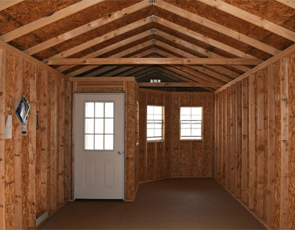 Measuring note: Old Hickory notes that smaller-width buildings are measured from the outside corners of the walls, and total building length can include the porch when applicable. Minimum size requirements and available sizes can vary by location.