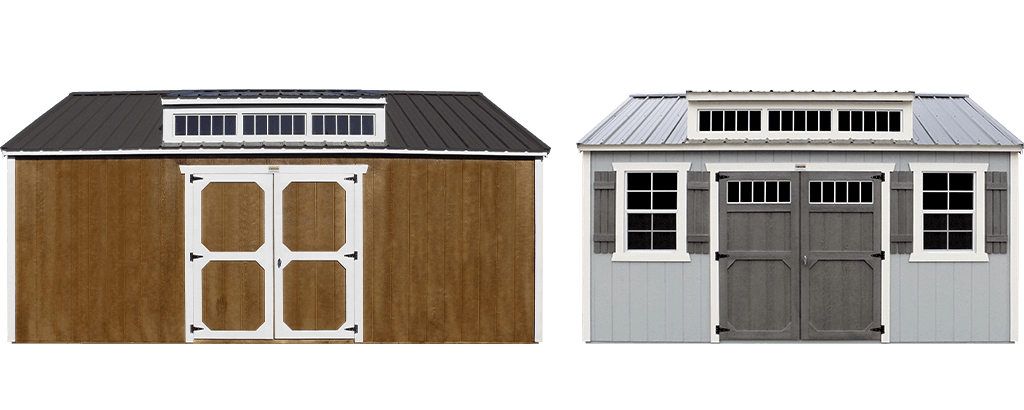 Buildings with Shed Dormer options are available with multiple siding styles and color options. Availability may vary by delivery location and package selection.