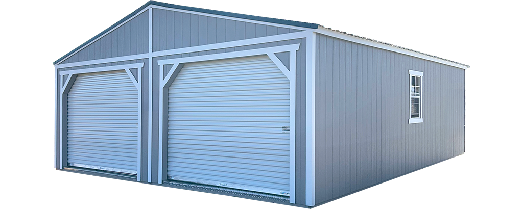 - Popular two-stall / double-stall garage alternative for equipment storage and garage overflow