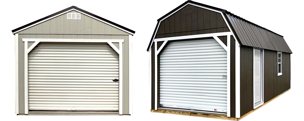 Old Hickory Garage buildings are a go-to choice when you want a wide opening for larger equipment and a secure, enclosed space for storage or workshop use. The Garage package is designed around a roll-up door for easy access and includes a solid walk-in door and a window for everyday convenience.