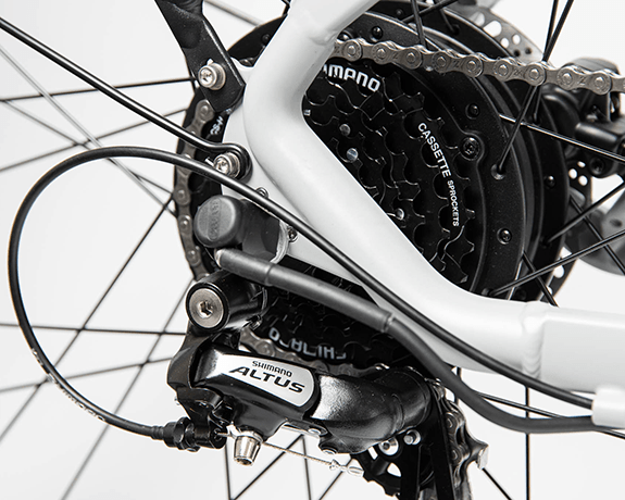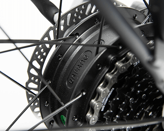 The HERA from Maui Bikes is an electric city bike equipped with a 500W Bafang motor and Samsung battery integrated into the hybrid alloy frame, allowing for a natural and comfortable riding posture for any type of ride. Equipped with Tektro hydraulic disc brakes, 27.5-inch alloy wheels, 38mm wide tires, and a SunTour front fork, the HERA allows for a comfortable ride on the road. Its rear rack, mudguards, and safety lights make it the ideal bike for long rides! New for 2024, we have added a suspension seat post, an adjustable stem for added comfort, a more powerful light, alloy fenders, and a rear rack capable of supporting 55lbs.